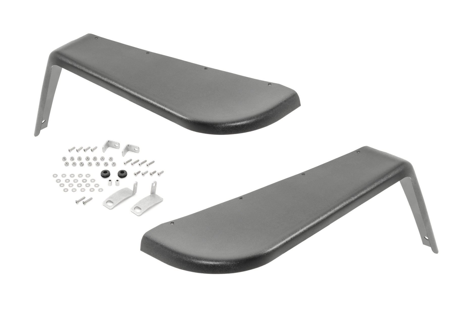 MCE fenders blend the aggressive, true flatty fender look of the original Jeep to the more modern Wrangler. Our fenders also provide more clearance for a taller tire and more aggressive looks. The MCE-spec TPO plastic will not sag or crack, is UV-stable, and flexible enough to absorb an impact on the trail and save your Jeep’s body. A common problem with rigid metal fenders is transferring energy to the Jeep’s body, and denting the panel the flare is attached to.